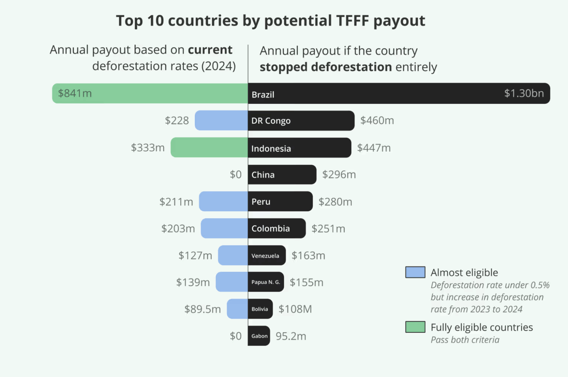 Brazil’s Tropical Forest Protection Fund Launches with $6.6 Billion — Will It Work? COP 30 22/11/2025 • Stefan Anderson Share this: Click to share on X (Opens in new window) X Click to share on LinkedIn (Opens in new window) LinkedIn Click to share on Facebook (Opens in new window) Facebook Click to print (Opens in new window) Print Lula’s flagship scheme has attracted only a quarter of its target funding as Indigenous groups turn from supporters to critics. Brazil’s tropical forest fund aims to be the largest financial instrument of its kind. But as COP30 enters its final hours, the effort has attracted limited political support and money. The Tropical Forest Forever Facility, Brazilian President Luiz Inácio Lula da Silva’s flagship initiative to protect the world’s tropical forests, reached $6.6 billion in pledges as COP30 entered its final hours, with Germany becoming the third nation alongside Brazil and Indonesia to commit $1 billion to the effort. “It is symbolic that the celebration of its birth is taking place here in Belém, surrounded by sumaúmas, açaí palms, andirobas, and jacarandás,” Lula said. “For the first time in history, countries of the Global South will take a leading role in a forest agenda.” The billions raised mark significant progress for the highly technical financing instrument that Lula has championed since COP28 in Dubai, set up to pay tropical forest nations for keeping trees and their surrounding forests standing rather than cutting them down, rewarding conservation with cash instead of traditional grants. But the president’s soaring language masked a fundamental problem: the fund remains well short of the $25 billion target Brazil set for government investments, designed to secure investor confidence and unlock an additional $100 billion in private financing for a total goal of $125 billion. Current funding flows to the Tropical Forest Forever Fund, according to the initiative’s website. Norway is the largest contributor by far, pledging $3 billion over ten years, nearly half the current total. France committed €500 million, while smaller pledges came from Portugal ($1 million) and the Netherlands ($5 million) to assist with technical matters pertaining to the fund’s secretariat. In effect, the entire tranche of start-up funding raised over the course of COP30 comes from just five nations, two of which, Brazil and Indonesia, are set to be major beneficiaries of the fund itself. Notably absent from the investor line-up were major economies that had previously expressed interest in supporting the fund, including China, Saudi Arabia, and the United Kingdom. The United States, viewed as another possible backer under former president Joe Biden, has reversed course under Donald Trump’s administration. Britain’s withdrawal came as a last-minute blow to Lula’s flagship project: the UK had been involved in designing the facility and pioneered tropical forest preservation when it hosted COP26 in Glasgow, but declined to invest on the eve of the summit due to a view in Downing Street that the effort remains in “too early a stage” to commit substantial finance, according to reporting by the Guardian. “It is telling—and concerning—that the UK, as one of the world’s richest countries, has not announced an investment to match those from less wealthy countries,” said Tanya Steele, chief executive of WWF-UK. The need for finance to protect the world’s tropical forests from the Amazon to the Congolian rainforests is urgent, despite repeated global pledges to protect them. The 2025 Forest Declaration Assessment shows that deforestation is continuing at crisis levels, with 8.1 million hectares lost in 2024 alone, 63% above the rate needed to meet 2030 targets. “At the halfway point to 2030, the world should be seeing a steep decline in deforestation. Instead, the global deforestation curve has not begun to bend,” the latest assessment found. “Financial flows are still grossly misaligned with forest goals, with harmful subsidies outweighing green subsidies by over 200 to 1.” Tropical forests store 15-20 years’ worth of global carbon emissions and represent roughly 30% of the planet’s carbon storage. Scientists warn that cumulative deforestation could trigger a catastrophic tipping point, converting forests to deserts. At least 92 countries in attendance at COP30 back a separate “deforestation roadmap” pushed by Lula, likely to be one of the key outcomes of the summit, including the EU and the Coalition for Rainforest Nations representing over 50 rainforest countries, more than the 82 nations supporting the parallel fossil fuel phase-out roadmap, according to Carbon Brief. The majority of remaining forests outside that coalition sit in Russia, Canada and the US, none of which support the roadmap in its current state. Despite the uphill battle, Lula characterised the fund as a centrepiece of Brazil’s climate agenda. “The Tropical Forest Forever Facility will be one of the main tangible outcomes in the spirit of COP30 implementation,” he said. “In just a few years, we will begin to see the fruits of this fund. We will take pride in remembering that it was in the heart of the Amazon rainforest that we took this step together”. A fund built on profits The Tropical Forest Forever Fund’s projected investment model, according to its website. The funding shortfall matters because the TFFF isn’t designed like traditional climate funds. It’s an investment vehicle, functioning similarly to a large endowment, set up to generate “competitive market returns” and a “strong value proposition” for its backers based on a projected profit rate of 7.5% on its assets. Without sufficient capital to generate significant returns, the mathematics collapse. The concept note published by the Brazilian presidency describes it as a mechanism “to support the full range of less-marketable tropical forest ecosyst