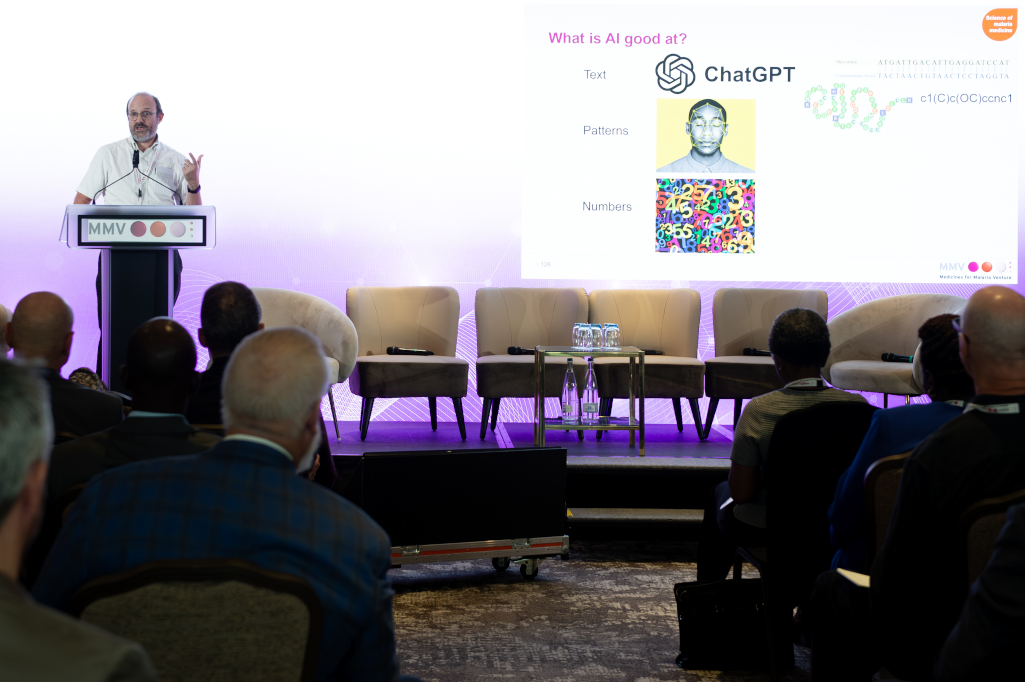 Can AI Democratize the Global Fight Against Malaria? Drug & Diagnostics Development 26/11/2025 • Felix Sassmannshausen Share this: Click to share on X (Opens in new window) X Click to share on LinkedIn (Opens in new window) LinkedIn Click to share on Facebook (Opens in new window) Facebook Click to print (Opens in new window) Print AI tools will help drug discovery researchers like Cláudia Fançony, principle investigator at Centro de Investigação em Saúde de Angola (CISA). Artificial intelligence could compress years of drug discovery into months – helping to overcome growing drug resistance to existing treatments for malaria and other vector-borne diseases. But scientists in low-income countries are often left behind. Jeremy Burrows, Medicines for Malaria Venture (MMV) vice president, head of drug discovery, explains how a new open-access, AI-powered drug discovery tool co-developed by MMV aims to level the playing field. Given the growing role of Artificial Intelligence (AI) in healthcare, what concrete contributions can the new technology offer in the fight against malaria? Jeremy Burrows: At MMV, we are focused on the mission to discover, develop, and deliver new antimalarials. Along the entire value chain, from the point where you first come up with a possible molecule all the way to the end, to delivering a medicine, there are huge opportunities for AI to have an impact. I work in the early stages of drug discovery. It is particularly in these phases where AI can play a major role in terms of helping us to identify new starting points, optimize these molecules toward candidate drugs, and then actually profile these compounds to ultimately be the medicines of the future. Jeremy Burrows, MMV vice president, head of drug discovery. AI is best at analysing large amounts of data. How do you make use of that? Burrows: Since our foundation in 1999, MMV has worked with about two dozen pharmaceutical partners around the world, screening millions of compounds that can target the world’s deadliest and most prevalent malaria parasite, Plasmodium falciparum, which gives us extensive data. We’ve modelled that data and created an open-access machine learning model malaria inhibitor prediction platform (MAIP), available for free. Anyone can go there, enter a virtual chemical structure, and receive a prediction of whether that compound is likely to be active against malaria. Through validation exercises, this approach gives a tenfold increase in hit rate, which is substantial for making choices about what compounds we acquire and work on. However, our major focus is actually using AI to help optimize the medicinal chemistry design of new compounds — that is the deliberate design of compounds in a process called generative design. A 3D model of the cofolded structure prediction of a Malaria Libre compound inhibiting Plasmodium cytochrome. So, your goal is to increase efficiency and accessibility? Burrows: Yes, we are working with the Gates Foundation and a London-based company called deepmirror to deliver a tool called Drug Design for Global Health (referred to as dd4gh). This tool will be delivered in March 2026 and will be available for free only for scientists working in global health. It allows a scientist to upload their chemistry and biology data, where everything is modelled. Scientists also have access to all models built on public domain data, hosted in the MMV network. With dd4gh, they can do generative design, creating virtual chemical structures that can be scored against the models to predict which ones will be good. We can boil down thousands of options to maybe 20 compounds to synthesize and test in an iterative design cycle. This process, called model-informed active learning, in which the models improve with each design cycle, can potentially reduce the number of cycle times required to deliver a candidate drug. Regarding accessibility, many tools like this are currently prohibitively expensive. Delivering dd4gh is therefore democratizing AI for scientists in lower- and middle-income countries to fight malaria. The dd4gh learning loop to improve compound design. You speak of democratisation. What are the main challenges of applying these AI-driven tools in low-resource settings? Burrows: There is clear inequity in access to these technologies. The investments needed are beyond the scope of most academic groups in lower- and middle-income countries. However, there are excellent scientists in Africa, and often good internet connectivity exists – even if the data centres running the algorithms will likely not be in Africa, all the ingredients are there. A major challenge in drug discovery in Africa is the logistics: how long it takes to order and receive components to make a compound. We are tackling this directly by encoding DD4GH with information about the local availability of building blocks so that it would prioritize compounds to make that can be accessed quickly. Our strategy involves free access to a high-end tool, training, and co-creation together. Jeremy Burrows presenting advances in AI at the MMV symposium in Geneva. Does your tool rely on a proprietary algorithm? And how is data-sharing organized amongst partners? Burrows: MMV, with the help of the Gates Foundation, has secured a licence that ensures long-term access. Critically, AI allows us to share information confidentially between partners so that it can be modelled without actually sharing data. In our recent MMV workshop where the tool was discussed, we asked participants if they would contribute their data into such a tool, and the response was unanimously positive. What other opportunities do you see for AI in drug discovery? Burrows: AI is opening up many new opportunities in drug discovery and MMV has multiple projects underway, including developing better models of how the immune system fights malaria and how drugs interact with the human body. We are partnering with some leaders in this field