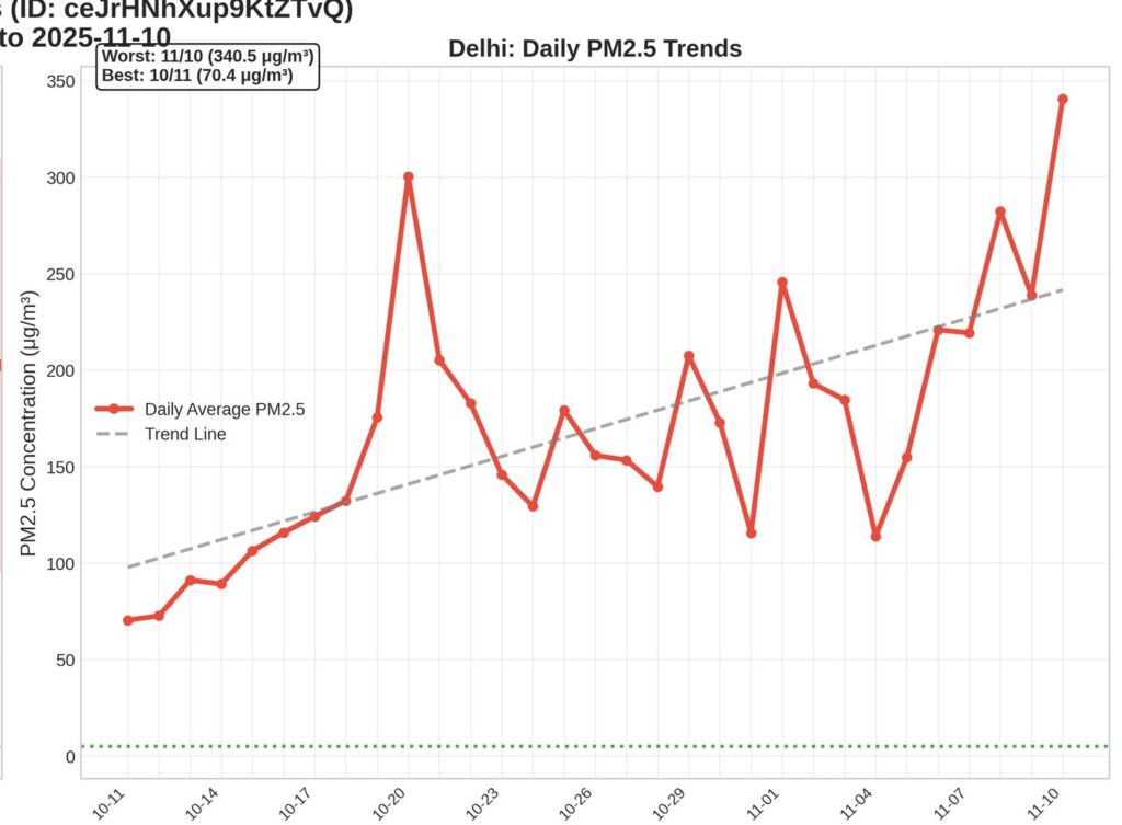 Delhi Police Crackdown on Largest Air Pollution Protest since Pandemic Air Pollution 10/11/2025 • Chetan Bhattacharji Share this: Click to share on X (Opens in new window) X Click to share on LinkedIn (Opens in new window) LinkedIn Click to share on Facebook (Opens in new window) Facebook Click to print (Opens in new window) Print Protestor raises clenched fist to a polluted sky at largest Delhi demonstration against air pollution since the pandemic. DELHI, India – The Delhi police detained nearly 100 people Sunday evening in a protest against high levels of air pollution in India’s capital – which has consistently ranked as the biggest pollution hot spot in the world over the past month. The protest, one of the largest since the COVID pandemic and coincided with the opening of the COP30 UN Climate Conference in Brazil, on the other side of the planet. The protestors, including the elderly and children, were also pushed and in some cases carried by police into buses to be removed from the site where hundreds of people had gathered around Kartavya Path, the venue for India’s annual military parade, after police barred direct access to India Gate, a war memorial and city landmark. Organizers said those detained were later released. The protests came on a day when the city ranked as the world’s most polluted – as it has for most of the past month. Over the last 30 days, Delhi dominated as the most polluted major city, ranking #1 for 594 out of 720 hours over the last 30 days – meaning it had the worst air quality over 80% of the time, IQAir told Health Policy Watch. By Monday, at the time of this story’s publication, pollution levels were hitting the highest marks this season, with PM2.5 at 340 micrograms/cubic metre (µg/m³), or more than 22 times the WHO 24 guideline level of 15 µg/m³. Delhi air pollution levels have steadily increased, over the past month reaching an all-time peak around noon on Monday. Delhi residents have suffered high pollution for several weeks now as massive fires of crop waste in rural northern India send smoke drifting towards the capital, as cooler, dry weather exacerbates the haze and pollution emissions from household cooking and heating, traffic and dust. It’s a pattern that’s repeated annually for over a decade – despite the countless pledges by national and metropolitan authorities of cleanup plans. “Why has the Health Ministry been silent?” asked one protestor, Jasmine Singh, a mother of a 14 year-old. “There’s been no health advisory, no warning for parents, no guidance for schools. That’s why no one is wearing masks anymore, schools are holding sports days, and even marathons are being organised — as if all is well. Who will bear the responsibility of the damage that this will cause to our children?” “Air pollution hurts everyone, but it hits people like us the hardest,” said Rukhsana, a waste worker from North Delhi. “We work outdoors all day, breathing in dust and smoke. Millions like us can’t afford air purifiers or masks — our lungs are our only protection, and even that is fading.” Opposition leaders criticize police arrests Police block protestors from gathering around India Gate; dozens of people were detained and later released. Opposition leaders criticised the action of the police – in the city that is now controlled by Nahendra Modi’s BJP party since the last elections early this year. Rahul Gandhi, head of the Congress Party, the largest opposition group in Parliament, tweeted “Why are citizens who have been peacefully demanding clean air being treated like criminals?” and called for decisive action on air pollution. Rekha Gupta, Delhi’s Chief Minister since the elections, did not make any comment in the immediate aftermath of the crackdown. Delhi’s Environment Minister, Manjinder Singh Sirsa, blamed the previous Delhi government led for a decade by the Aam Aadmi Party (AAP) for doing no work to prevent pollution and claimed that the Gupta government is continuously taking steps to curb pollution. The protests took place on Kartavya Path, where India’s military parade is held on Republic Day every 26 January. The initial call for protests was at India Gate, a short walking distance away. The memorial arch is a popular evening destination, especially on weekends, but police barricaded it ahead of the protests. “India Gate is not a protest site, as families come here and this is a route for VIPs,” the Deputy Commissioner of Police for the area, Devesh Kumar Mahla, told reporters who gathered for the demonstration. Even so, extra police personnel were deployed to the area – and most of them were not wearing a mask despite the ambient PM2.5 levels registering at 150 micrograms µg/m³ or more – 10 times the WHO 24-hour guideline level. Police warn organizers of legal action Waste workers join protest over air pollution exposures. Police have reportedly warned two of the organisers, Bhavreen Kandhari of Warrior Moms and journalist Saurav Das, of legal action. “The fact that we are out on the streets for something as basic as air shows how deeply the system has failed,” Kandhari, the mother of twins who suffered respiratory problems when they were growing up in Delhi, told Health Policy Watch. “No parent should ever have to protest for their child’s right to breathe clean air. For years, pollution control boards have existed in name, but not in impact.” She said the state’s inability to fix this crisis calls for a structural shift, beginning with the creation of an independent air quality and public health commission that is autonomous, expert-led, and accountable to Parliament. See related story here: Mothers’ Message at WHO Air Pollution Conference: Behind Every Statistic is a Child Struggling to Breathe The protests, initially organized about a week ago, were triggered by a further spike in pollution above already poor seasonal levels where rural crop waste b