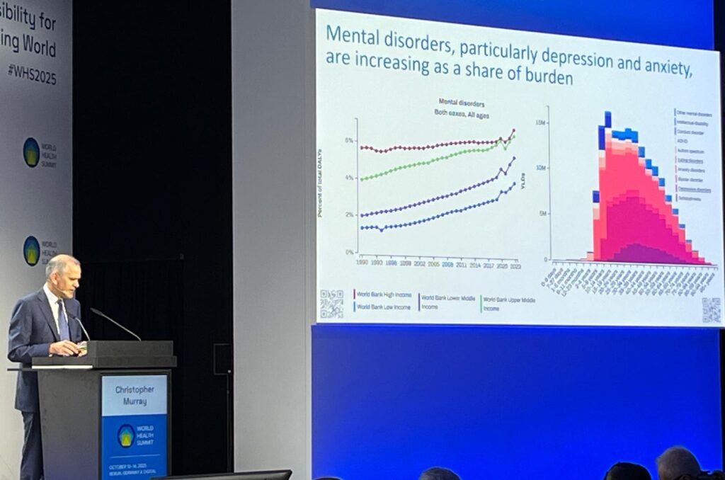 Global Life Expectancy Sees Post-COVID Rebound – But Deaths Among Youths In North America and Latin America Rise World Health Summit 13/10/2025 • Elaine Ruth Fletcher Share this: Click to share on X (Opens in new window) X Click to share on LinkedIn (Opens in new window) LinkedIn Click to share on Facebook (Opens in new window) Facebook Click to print (Opens in new window) Print Chris Murray, Director of Institute for Health Metrics and Evaluation, describes key findings of the 2023 Global Burden of Disease study at the World Health Summit launch. BERLIN – Global life expectancy rose again in 2023 after a decline during the COVID pandemic with overall life expectancy 20 years higher as compared to 1950. But North America and Latin America are seeing higher death rates among adolescents and young adults due to a crisis in mental health – reflected in higher rates of suicide, drug abuse and excessive alcohol consumption. In sub-Saharan Africa, infectious diseases and unintentional injuries also struck young people disproportionately. These were among the key findings of the 2023 Global Burden of Disease Study, by the Institute for Health Metrics and Evaluation, published Sunday in the Lancet. The report was launched on the opening day of the annual World Health Summit. Some 14,000 people are attending the three-day science and policy event, including 4,000 on site. Germany donates $1 billion to Global Fund The Global Fund’s Peter Sands (on left) thanks Germany for the $1 billion commitment announced at the World Health Summit. At the WHS opening, the German government announced it would be making a mammoth €1 billion donation to the Global Fund to Fight HIV/AIDS, Tuberculosis and Malaria for the 2027-2029 period. The Global Fund is in the midst of its triennial replenishment campaign, with the aim of raising $18 billion for the upcoming three-year period. It’s replenishment ‘summit’ is scheduled for 21 November in Johannesburg, on the margins of the G-20. “It’s not often that you stand on stage and you get a pledge for a billion euros,” quipped Global Fund head Peter Sands, in accepting the gift. “But this announcement is a really important milestone, setting the tone and a benchmark for other donors. “We all know that 2025 has been a very tough year,” he added. “We’ve had a lot of complicated geopolitics. We’ve had disruption of funding, a whole range of issues confronting us, and those issues aren’t going to be solved quickly, right? “The politics is complicated, the funding is difficult. But we should also look at this as a moment of opportunity in terms of making changes we should have been making anyway,” he said, remarking on how a “fragmented” global health sector could seize the moment to create “efficiencies and greater synergies.” It’s also a moment of opportunity for harnessing medical innovation, he added, citing the Global Fund rollout of twice yearly injections of lenacapavir (LEN), which WHO recommended in July as a pre-exposure prophylaxis (PrEP) option for HIV prevention. “With the emergence of lenacapavir and the fact that we can roll it out at scale this year, we really have the prospect of bringing AIDS to an end as a public health threat. That is an extraordinarily exciting thing.” Worrying trends among youths and young adults Mental disorders are increasing – and their impacts are particularly evident in trends among youths. The new GBD report shows that Global life expectancy returned to pre-pandemic levels with 76.3 years of life expectancy for females and 71.5 years for males. That is also more than 20 years higher compared to 1950. Despite this progress, stark geographic differences remain, with life expectancy ranging from as high as 83 years in high-income regions to as low as 62 years in sub-Saharan Africa. Among adolescents and young adults, the largest increase in deaths was registered among those aged 20 to 39 years-old in high-income North America from 2011 to 2023, mainly due to suicide, drug overdose, and excessive alcohol consumption. During the same period, deaths in the 5–19-year age group also increased in high-income North America, the Caribbean, and Eastern Europe, the report found, with trends in the latter region linked to the ongoing conflict in Ukraine. Across all ages, mental health disorders are rising steeply, with anxiety disorders increasing by 63% and depressive disorders by 26%. In addition, sexual abuse and intimate partner violence were identified as preventable contributors to depression and anxiety. The GBD 2023 study highlights the need for policymakers to extend their thinking about health priorities beyond reducing child mortality to adolescents and young adults, IHME experts stressed. “The share of burden that is from mental disorders, is going up in all of the World Bank income groups, with the most marked increases actually in low and lower middle income countries, but certainly rises everywhere,” said Chris Murray, IHME director, speaking at a launch panel on the GBD study. NCDs now account for nearly two-thirds of mortality and morbidity Premature deaths in Africa and parts of asia from cardivascular disease are much higher than in developed countries. The report also underlines how non-communicable diseases (NCDs) now account for nearly two-thirds of the world’s total mortality and morbidity, with ischemic heart disease, stroke, and diabetes leading the way. Researchers also estimate that nearly half of all death and disability could be prevented by modifying leading risk factors, such as reducing high levels of blood sugar and obesity, which is increasing almost everywhere in the world. Comparatively, premature deaths from NCDs are much higher in low-and middle-income countries than in developed ones, due to the lack of access to diagnosis and treatment. And in some of the poorest countries, premature deaths from NCDs may even be rising as diets change with th