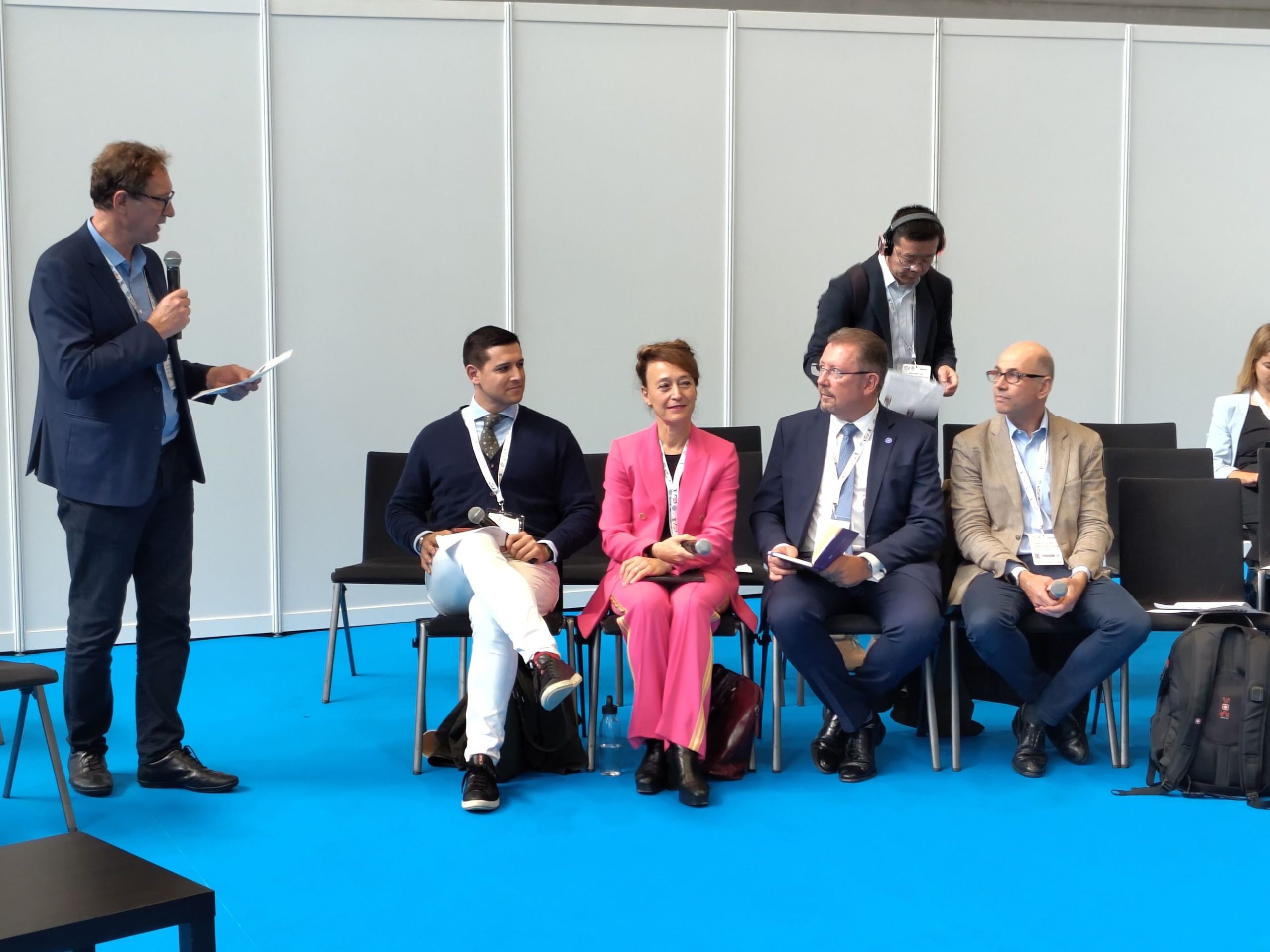 ‘Can we imagine new forms of collaboration that support vital action … while avoiding pitfalls of conflicts of interest?’ Benoît Miribel (far left) asks panelists.