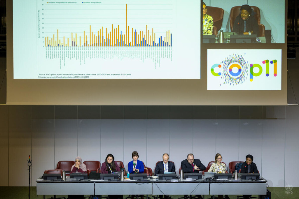 ‘Unprecedented Levels of Industry Interference’ Stalls Decisions on New Tobacco Products and Pollution at UNFCTC COP11 Tobacco & Alcohol 22/11/2025 • Felix Sassmannshausen Share this: Click to share on X (Opens in new window) X Click to share on LinkedIn (Opens in new window) LinkedIn Click to share on Facebook (Opens in new window) Facebook Click to print (Opens in new window) Print This year’s COP11 on tobacco control brought over 1600 participants to Geneva. The Eleventh Conference of the Parties (COP) to the WHO Framework Convention on Tobacco Control (FCTC) concluded in Geneva on Saturday with calls to member states to take stronger action on reducing the environmental harm of tobacco use and increasing corporate liability. But political stand-offs between countries, along with industry interference, hindered major breakthroughs on outlawing plastic cigarette filters, as well as stronger regulation of marketing and cross-border trade in e-cigarettes, flavoured tobacco and other new products. A proposed ban on polluting plastic cigarette filters that constitute one of the most omnipresent sources of pollution on beaches and in waterways worldwide, failed to receive delegates’ support. A parallel regulation on the disclosure of tobacco product contents also failed to win sufficient backing – despite what some observers described as a “real sense of urgency in the room.” Rather than an authoritative working group, delegates agreed to establish an informal consultation group, under the guidance of the WHO. Appeals to increase tobacco control funding and strengthen frameworks on environmental pollution and liability Even so, the six-day conference, November 17-22, saw the passage of decisions that more explicitly recognise the serious damage caused by the entire tobacco supply chain, from farming and manufacturing to use, including the waste produced by electronic cigarettes. Among these, COP delegates called on member states to consider stronger regulatory frameworks regarding polluting tobacco products and components, as well as holding the tobacco industry legally liable for the health and environmental damage it causes. Reina Roa, President of the COP, stressed that, in the face of scientific evidence, the harm that is caused by tobacco products on the environment is “absolutely undeniable”. Reina Roa, President of the Conference of the Parties to the WHO FCTC, speaking at the COP. Despite friction on key issues, delegates also agreed to increase state funding for domestic tobacco control programmes, and consider more new, forward-looking measures such as generational (youth) bans on cigarettes. Additionally, a decision was approved calling on parties to consider stronger legislative action to deal with criminal and civil liability related to tobacco control. Speaking at a closing press conference Saturday, Andrew Black, Acting Head of the Secretariat said the meeting said, “These important decisions made by Parties to the Convention will contribute towards saving millions of lives in the years to come and protecting the planet from the environmental harms of tobacco.” He said the meeting had reaffirmed the FCTC’s importance as one of the most widely embraced United Nations treaties in history. With more than 1600 registrations for the conference, representatives of 160 parties joined the tobacco control deliberations. Experts see steps toward industry accountability Issues such as preventing the uptake of e-cigarettes were discussed in side-events at COP11. While the decisions on environmental pollution and liability are not binding, researchers and civil society actors hail this as a step towards holding the industry more accountable legally in the future. “The tobacco control community is pushing to transition from responsibility to liability,” explained Filippos Filippidis, Chair of the Tobacco Control Committee at the European Respiratory Society and Associate Professor at the School of Public Health at Imperial College London. “Current approaches in some places rely on extended producer responsibility, which is insufficient and allows the tobacco industry to greenwash their activities with minor initiatives,“ Filippidis said in an interview with Health Policy Watch. Complete ban on all tobacco products in UN premises The COP also adopted a decision that advocates for a complete ban on the use and sale of all tobacco products, including heated tobacco products, and of novel and emerging nicotine products like e-cigarettes within all United Nations indoor and outdoor premises globally. Another COP decision reaffirmed that domestic resource mobilization is a core strategy for achieving predictable funding, urging parties to adopt effective tobacco tax policies. The WHO best practice for taxes on tobacco is to impose taxes such that the total tax burden constitutes at least 75% of the retail price of tobacco products. ‘Heated’ debate on new nicotine products Heated tobacco products are one example of new challenges faced. Gan Quan, Senior Vice President of Tobacco Control at Vital Strategies, sees regulation of new products as one of the most contentious issues in global tobacco control. The most controversial topic concerned the way new products such as electronic and heated tobacco and nicotine products should be addressed in the Framework Convention – the first time the issue was discussed at a COP. Tobacco control advocates want the Convention’s obligations and protocols for preventing and reducing nicotine addiction to be applied to these new products, as they are with traditional cigarettes. The industry is directly targeting young people and adolescents with electronic products, also including attractive flavours and bright colours, to get them hooked on tobacco and/or nicotine use, control advocates pointed out. The tobacco industry, on the other hand, claims these novel products constitute ‘harm reduction’ by supporting adult u