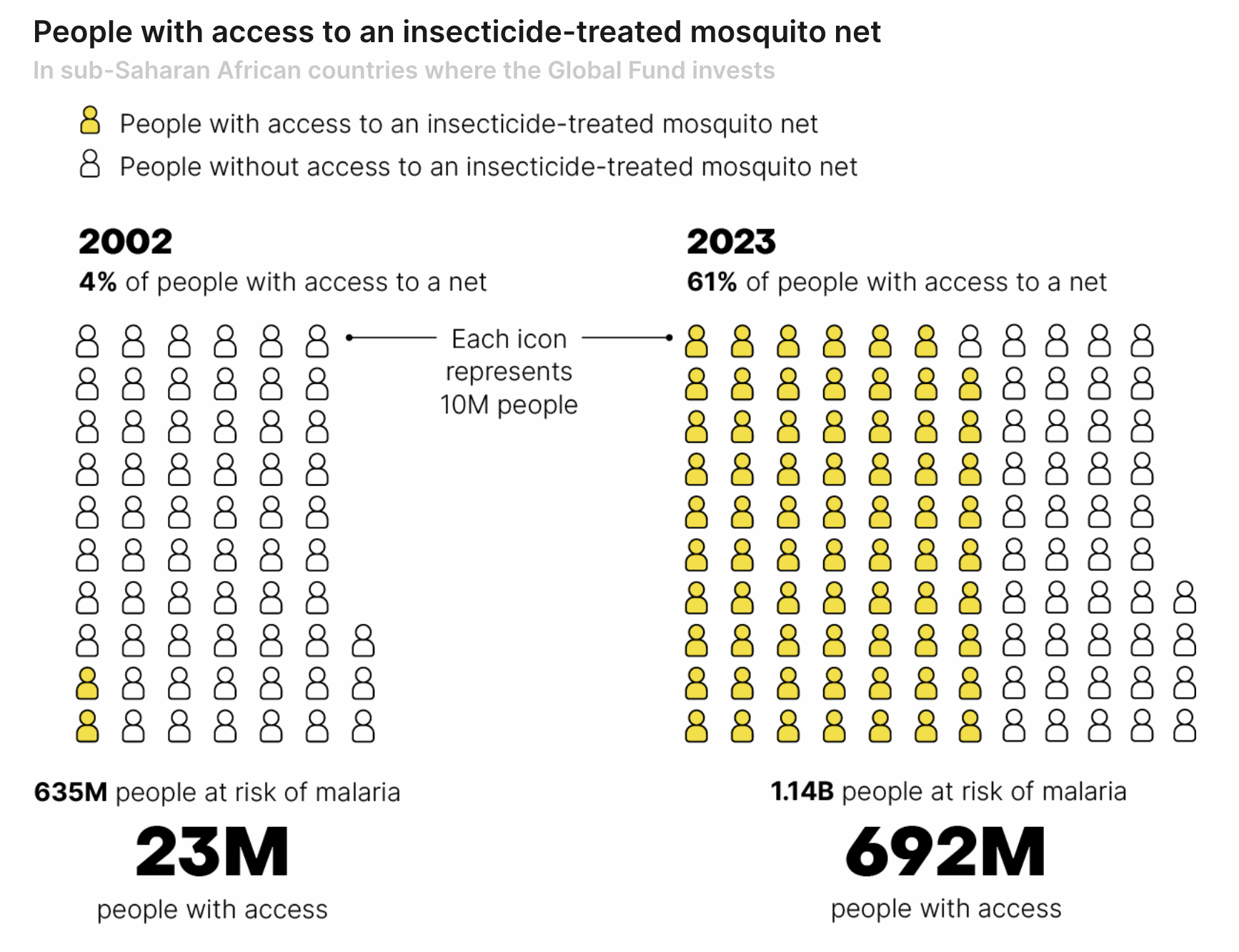 People with access to an insecticide-treated mosquito nets In sub-Saharan African countries where the Global Fund invests.