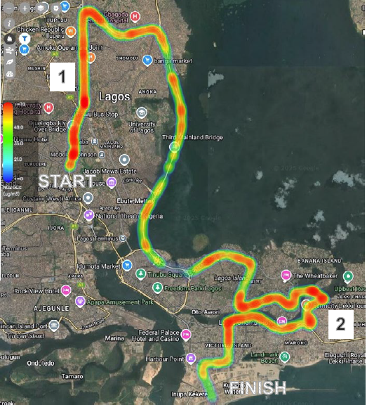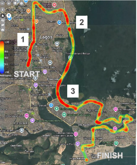 World Athletics Expands Air Quality Monitoring, But Can Sports Fill Global South’s Data Void? Air Pollution 24/03/2026 • Kate Okorie Share this: Share on X (Opens in new window) X Share on LinkedIn (Opens in new window) LinkedIn Share on Facebook (Opens in new window) Facebook Print (Opens in new window) Print Share on Bluesky (Opens in new window) Bluesky A run leader (right) holds up a portable air quality sensor during the UrbanBetter air quality awareness walk in Lagos. On a Saturday morning in Lagos, several volunteers in white “Run Lagos” t-shirts gathered for an air pollution awareness walk. They split into small groups and filed through the narrow streets, placards in hand. One read, “Air Is Free But Polluted Air Leads To Health And Climate Change Expenses.” The walk coordinators carried portable air quality sensors, logging particulate matter (PM)2.5 (fine particles) and PM10 (coarse particles), nitrogen dioxide (NO2), humidity and temperature readings in real time. By the time the walk ended, the sensors had recorded a PM2.5 reading of 14 µg/m³ – a moderate morning by Lagos standards, where readings typically average between 30 to 50 μg/m³ (over 35.5μg/m³ is considered unhealthy while a reading of 12 and under is considered good). This walk is part of a wider air quality monitoring effort in Lagos led by UrbanBetter, one of the implementing partners of the World Athletics’ Running for Clean Air initiative, which leverages city marathons and existing running communities to collect air pollution data in urban areas. Lagos is the second city to host the project after Warsaw, Poland. Last week, the athletics governing body announced the second phase of the initiative. In partnership with the Clean Air Fund, the program is expanding its monitoring network to cover upcoming athletics events in Botswana, Thailand, and Spain. “’Running for Clean Air’ phase two marks a defining moment: for the first time, a major sports federation is systematically monitoring air quality across multiple continents and competition types,” says World Athletics President Sebastian Coe. Mapping the marathon route In 2025, during the first phase in Lagos, sensors were deployed along the route of the annual Lagos City marathon. “The data we gathered was not surprising to us,” says Waziri Abubakar, UrbanBetter Hub Liaison Officer. The heatmap of the PM10 levels on the route of the 2025 Lagos City Marathon shows the highest concentration on the Lagos Mainland (upper region), while Lagos Island (lowest region) showed better air quality because it is within a restricted residential area. Heatmap of the PM10 levels on the route of the 2025 Lagos City Marathon. Its concentration was highest on the Lagos Mainland (upper region), while Lagos Island (lowest region). The readings showed consistently elevated pollution at major intersections and across the Lagos Mainland, where activities like fish smoking and poor waste management drive localised spikes. The levels of the greenhouse gas, NO2, followed a similar pattern to PM10, with the highest readings in the upper region. However, readings were also high towards the end of the race. NO2 is a traffic-related air pollutant associated with cardiovascular and respiratory mortality following short-term exposure. UrbanBetter now integrates these findings into the state’s regulatory framework by sharing data with the Lagos State Environmental Protection Agency (LASEPA), the state’s primary environmental regulator. “A primary outcome of this data was the decision to reroute the 2026 marathon to Lagos Island to leverage its superior air quality,” says Abubakar. Heatmap of the NO2 levels on the route of the 2025 Lagos City Marathon. The highest NO2 concentration is observed on the Lagos Mainland (upper region). While the air quality data supported this shift, the race organisers’ official statement omitted environmental factors, instead framing the change as an evolution and a commitment to their values of “excellence, safety, and world-class delivery.” Following the end of the first phase, World Athletics gifted the air-monitoring device to LASEPA, with the agency committing to using the data for policy decisions. According to Abubakar, the agency is also looking at setting up low-emission zones in Lagos, with the data helping determine where those zones would be located. Three monitors for 20 million people Sub-Saharan Africa averages one ground-level air quality monitor per 16 million people. Lagos now has three reference-grade monitors and several low-cost sensors for its 20 million residents. “What was missing and is still missing is that for a population of over 20 million, that is not enough,” says Abubakar. One of the three reference monitors in Lagos is a United States Embassy station with an uncertain future amid shifting American environmental policies. Air pollution continues to be a leading risk factor for early death, surpassed only by high blood pressure, and 90% of the burden falls on low- and middle-income countries, according to the State of Global Air 2025 report. The report attributes around 200,000 deaths in Nigeria to air pollution annually, making it the country’s third leading risk factor for premature death. Waziri Abubakar (right), UrbanBetter Hub Liaison Officer, at the 2026 Lagos City Marathon, Nigeria. Grassroots data, government-sized gaps In the absence of government monitoring, low-cost sensors have become an important source of data in resource-constrained places like Nigeria. The 2023 IQAir World Air Quality Report found that more than half of the world’s air quality data came from grassroots community efforts. The second phase of the World Athletics’ Running for Clean Air initiative will kick off at the World Athletics Relays in Gaborone, Botswana, a country whose primary air quality legislation dates back to 1971. The WHO’s Health and Environment Scorecard gives Botswana a policy sc
